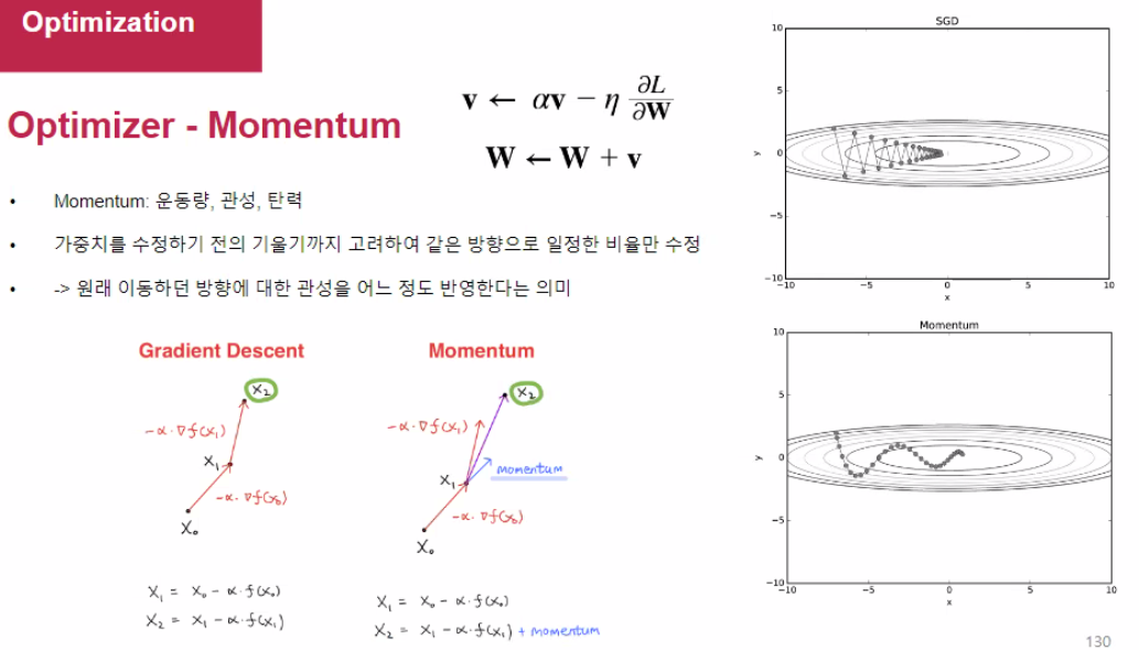 - Momentum (원래 이동하던 방향에 대한 관성을 어느정도 반영)