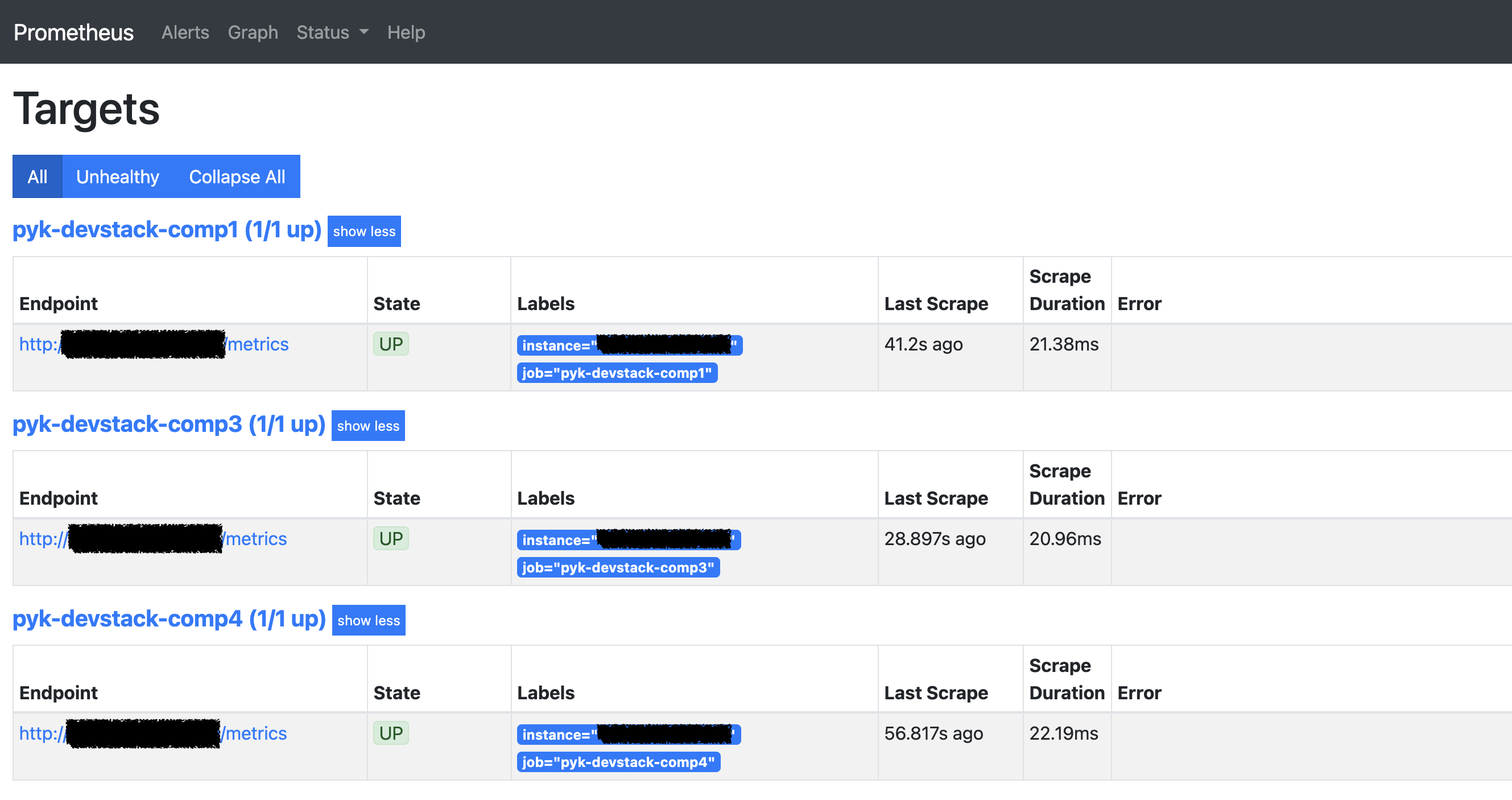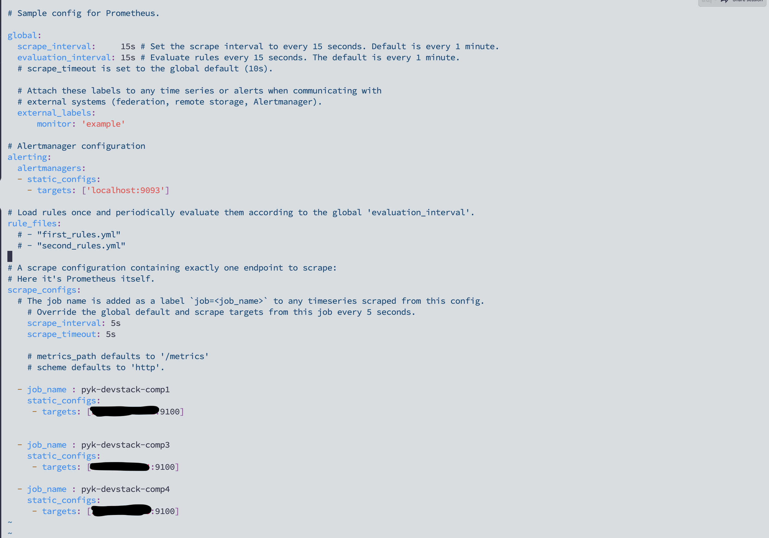 필자는 현재 multi-node로 생성한 hypervisor 4대에 Node_exporter를 설치했고, Monitoring 하고 있기에 위와 같이 설정했다.