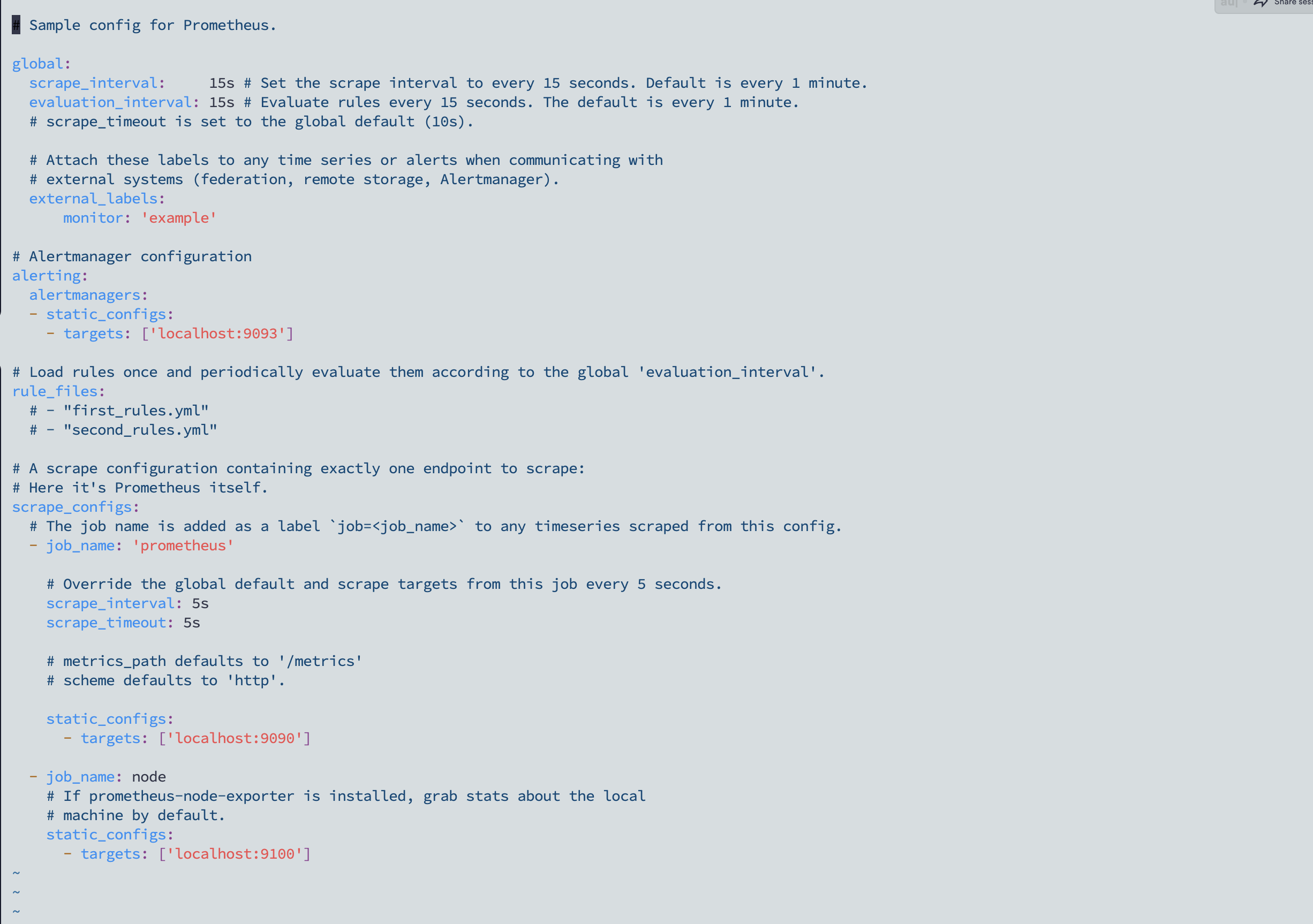 scrape_configs를 확인하면 위에 Web에서 Target의 대상을 확인할 수 있다.