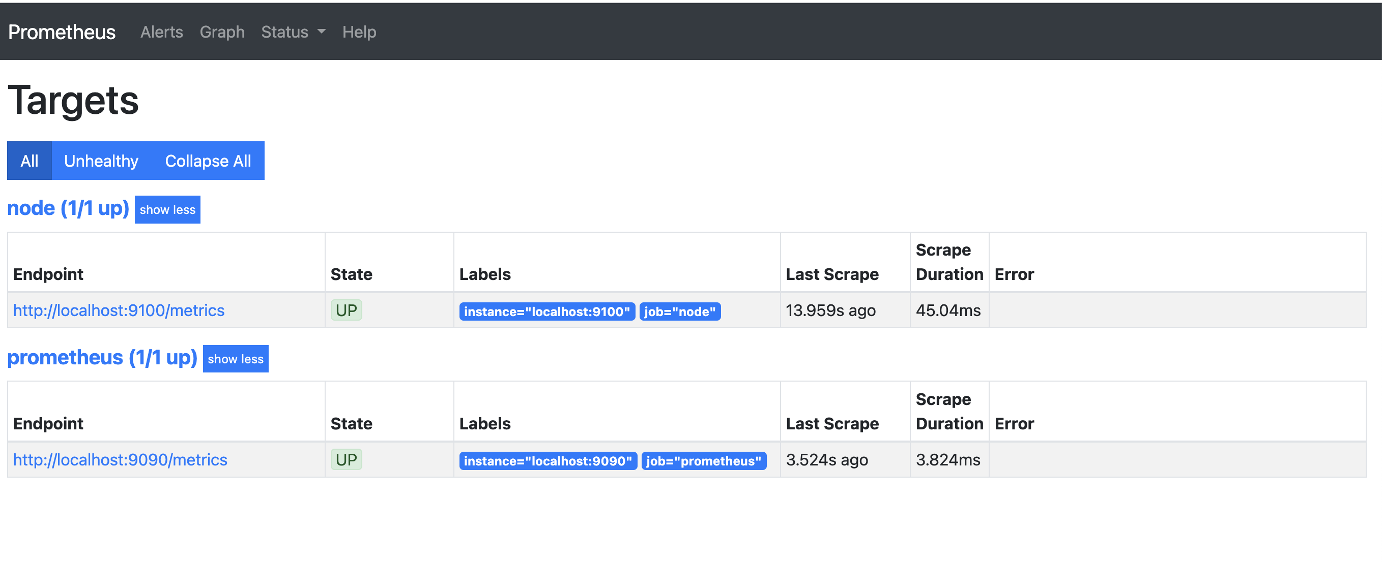우선 Status에서 Targets을 눌러서 현재 어떤 걸 관찰하고 있는지 확인한다.