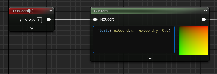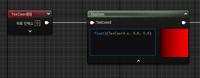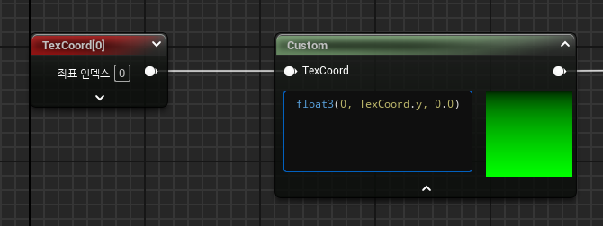 HLSL 코드를 수정하고 TextureCoordinate 노드를 입력으로 연결하자.