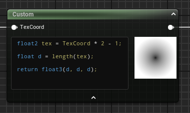 해당 코드를 통해 UV좌표와 원점 사이의 거리를 나타낼 수 있다.