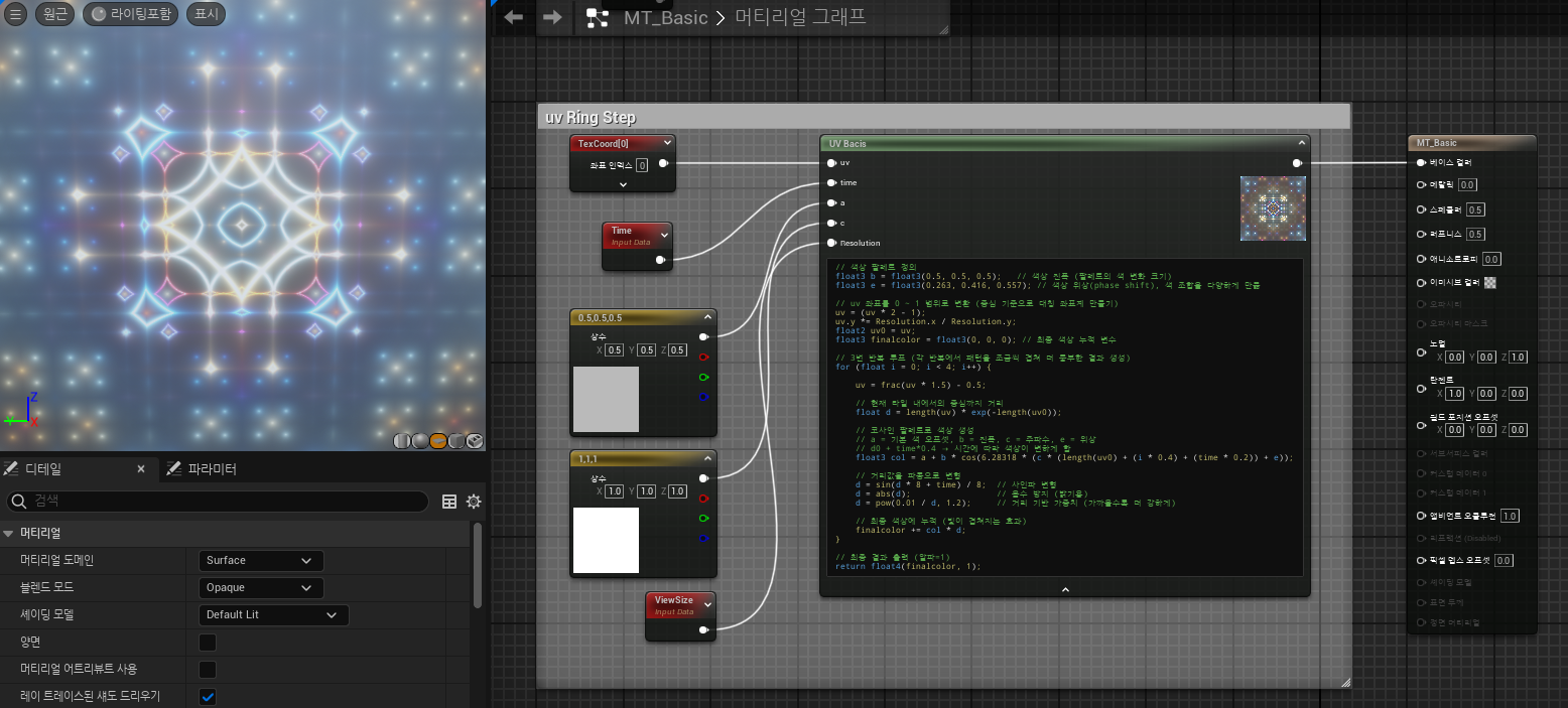 추가적으로 HLSL 코드로 만들어진 Material은 블루프린트 노드로도 똑같이 구현이 가능하다.