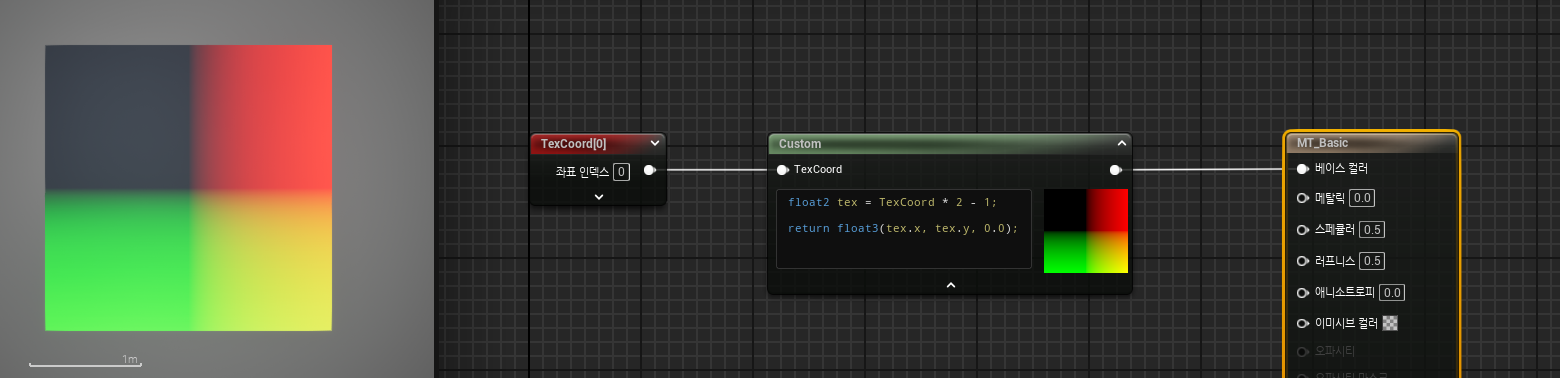 그러면 출력값으로 Texture UV의 색상이 나오는 것을 확인할 수 있다.
