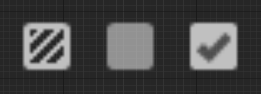 체크 박스의 상태에 따라 특정 이미지/머티리얼을 표시합니다. 클릭하거나 특정 상태로 설정할 수 있으며, 주로 ON/OFF 상태를 표시하는 데 사용됩니다.