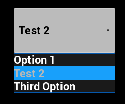 드롭다운 박스로, 선택 시 문자열(텍스트가 아닌, 즉 로컬라이즈 불가)을 표시하고 옵션 목록을 보여줍니다.