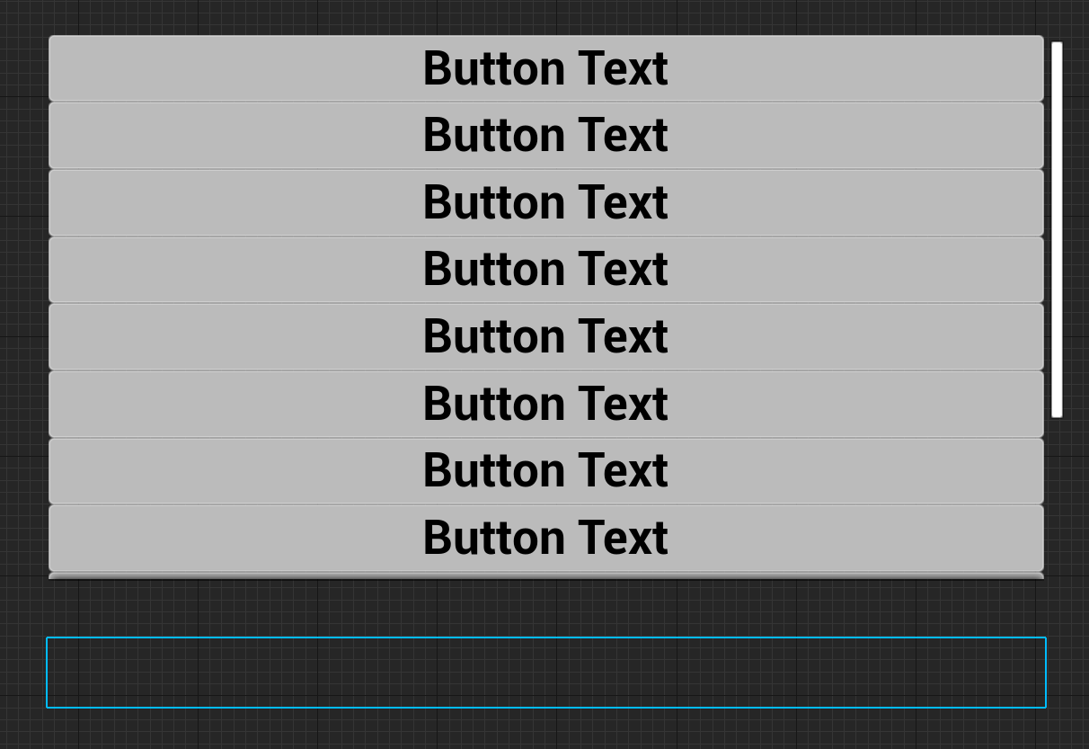 자식 위젯을 1개만 가질 수 있습니다. 자식 위젯을 이 위젯 앞에 표시하며, 상호작용 및 포커스가 가능합니다. 클릭/프레스/릴리즈/호버/언호버 시 이벤트를 반환합니다. 클릭(마우스 버튼), 터치(터치 스크린), 프레스(키보드 & 게임패드) 방식을 각각 설정할 수 있습니다.