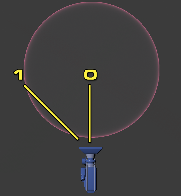 언리얼 엔진에서 Fresnel 머티리얼 표현식은 표면 노멀과 카메라 방향의 내적을 기준으로 감쇠를 계산합니다. 표면 노멀이 카메라를 똑바로 가리켰을 때 출력 값은 0이며, 프레넬 이펙트가 일어나지 않음을 뜻합니다. 표면 노멀이 카메라와 직각일 때 출력 값은 1이며, 프레넬 이펙트가 완전히 일어남을 뜻합니다. 그런 다음 중앙에 음의 컬러가 없도록 결과는 [0, 1]로 범위제한됩니다.