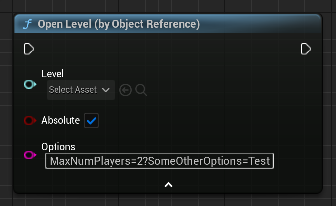 중요한 변수 중 하나는 'Options String'입니다. 이 옵션들은 '?'로 구분되며, 'OpenLevel' 함수나 콘솔 명령어로 'ServerTravel'을 호출할 때 전달할 수 있습니다.