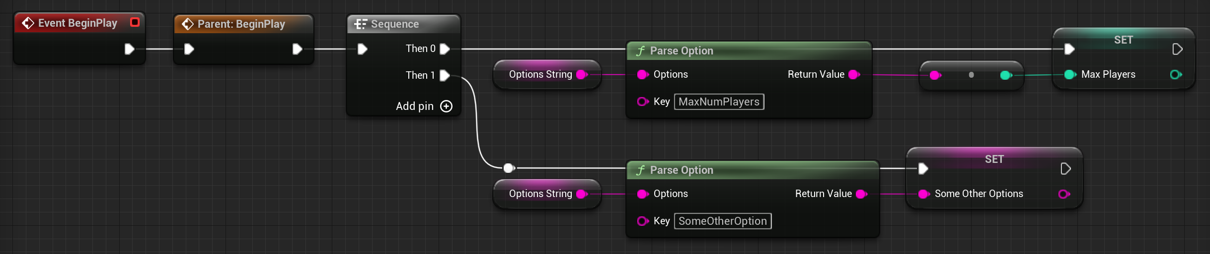 'Parse Option'을 사용하여 'MaxNumPlayers'와 같은 전달된 옵션을 추출할 수 있습니다.