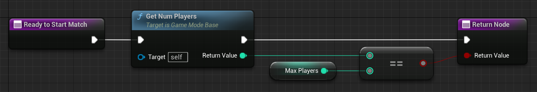앞서 언급했듯이, GameMode를 사용하여 게임의 전체적인 경기 흐름을 관리할 수 있습니다. 이를 위해 'Ready To Start Match'와 같은 오버라이드 가능한 함수들이 있습니다.