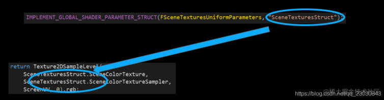 BEGIN_GLOBAL_SHADER_PARAMETER_STRUCT(FSceneTextureUniformParameters, /*Blah_API*/)