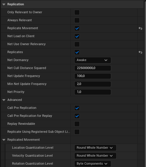 Replication은 AActor 자식 클래스의 Class Defaults 또는 생성자에서 활성화할 수 있습니다.