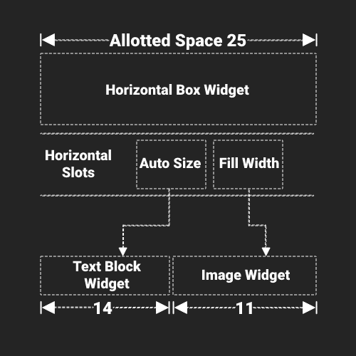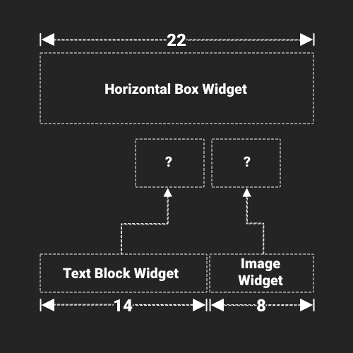이 예시에서 TextBlock이 14 슬레이트 유닛, Image 위젯이 8 슬레이트 유닛의 크기를 가진다고 가정하면,