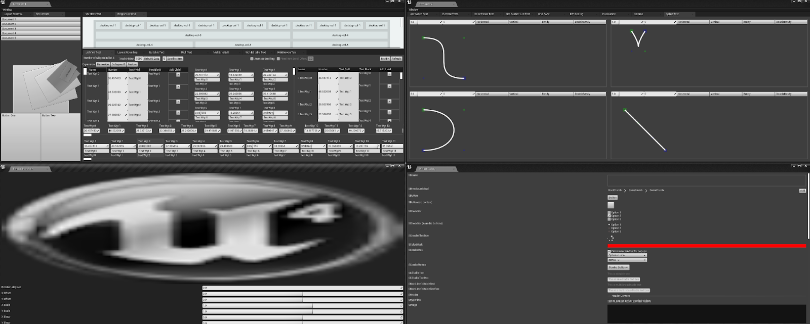 Slate 위젯 예제(UE4에서는 Slate Test Suite, UE5에서는 Starship Suite로도 불림)는 라디오 버튼, 반응형 그리드, 컬러 휠 등 다양한 Slate 기반 UI 예제를 모아둔 컬렉션입니다.