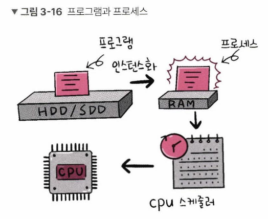 -> 프로그램이 메모리에 올라가면, 프로세스가 되는 인스턴스화
