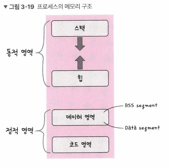 - 운영체제는 프로세스에 적절한 메모리를 할당하는데, 다음 구조 기반으로 할당