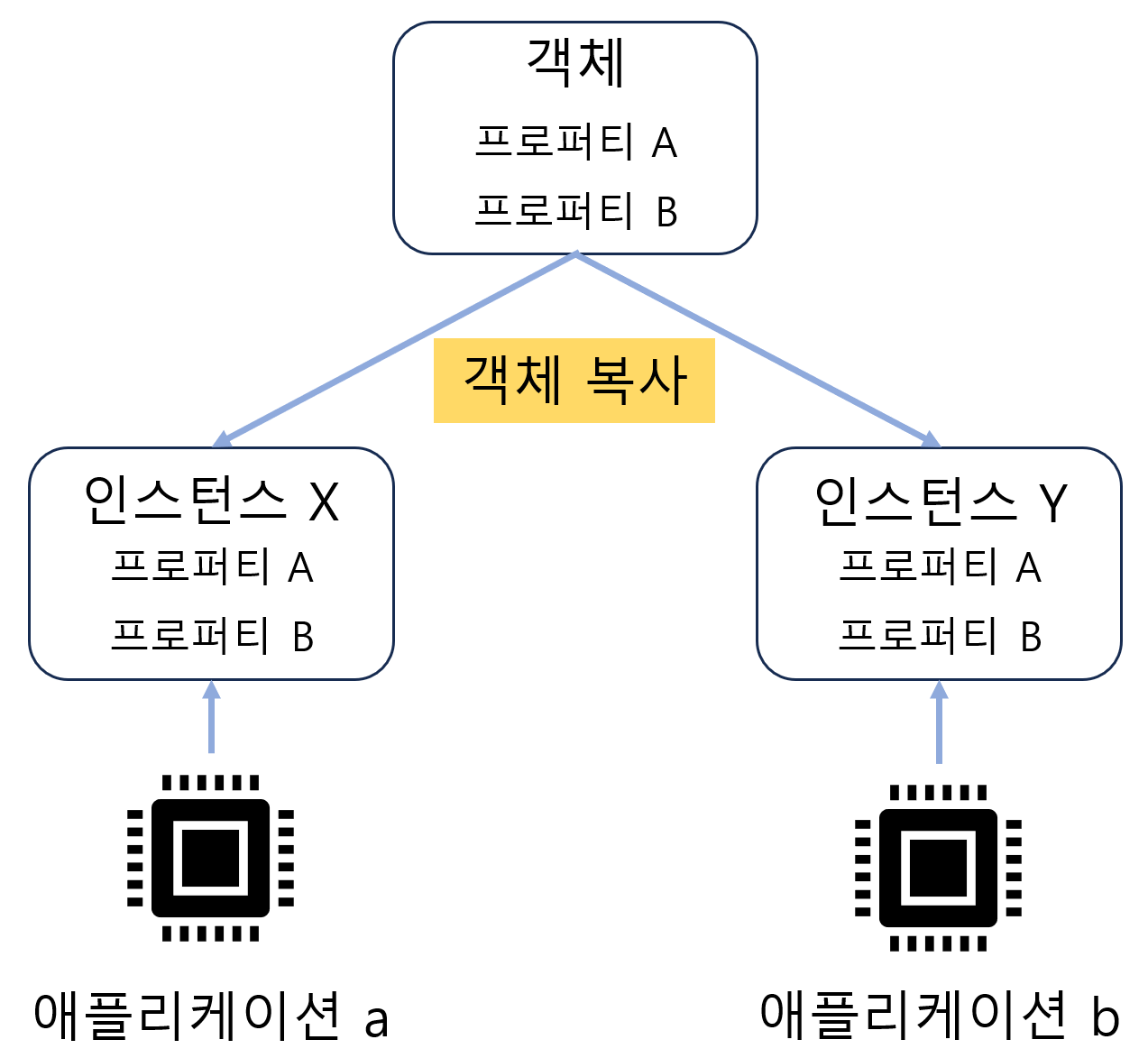 서로 다른 애플리케이션의 객체의 동일한 프로퍼티를 조작하려고 한다면 서로 충돌하여 올바른 작동을 하지 않을 수 있습니다. 따라서 객체의 원본은 직접적으로 접근하지 않고 '원본을 복제한 복사본'을 만들어 사용함으로써 오류를 방지할 수 있습니다.