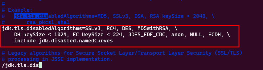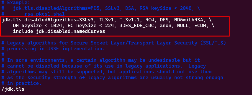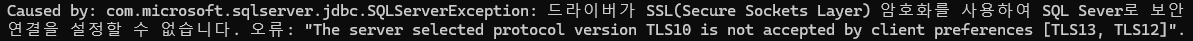 오류를 찾아보니 기본적으로 openJDK에서는 8u292 이상 버전부터 TLS 1.0, TLS 1.1 버전을 비활성화 하는 옵션이 설정되어서 연결 설정을 할 수 없다고 한 것이다.