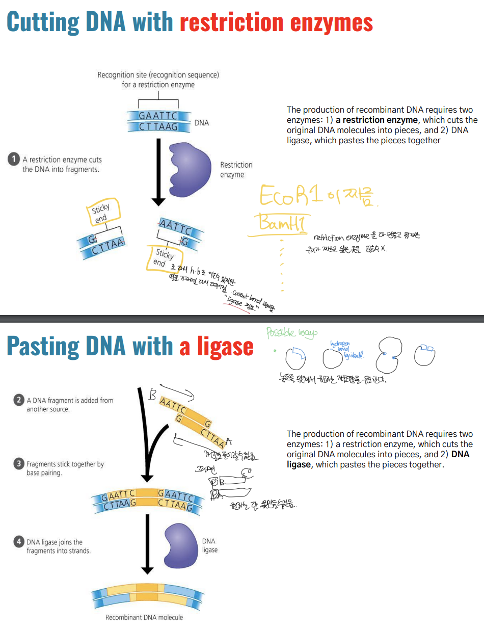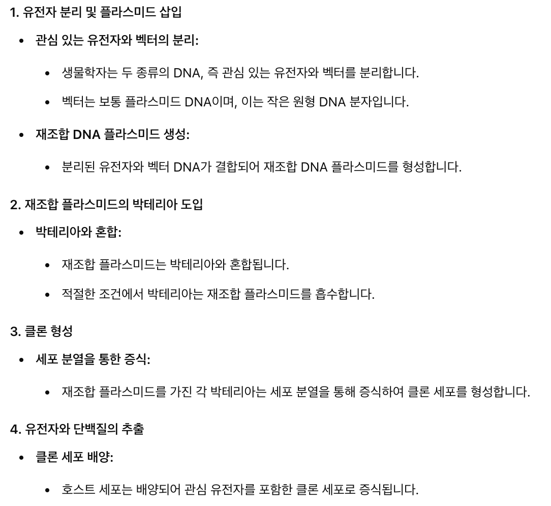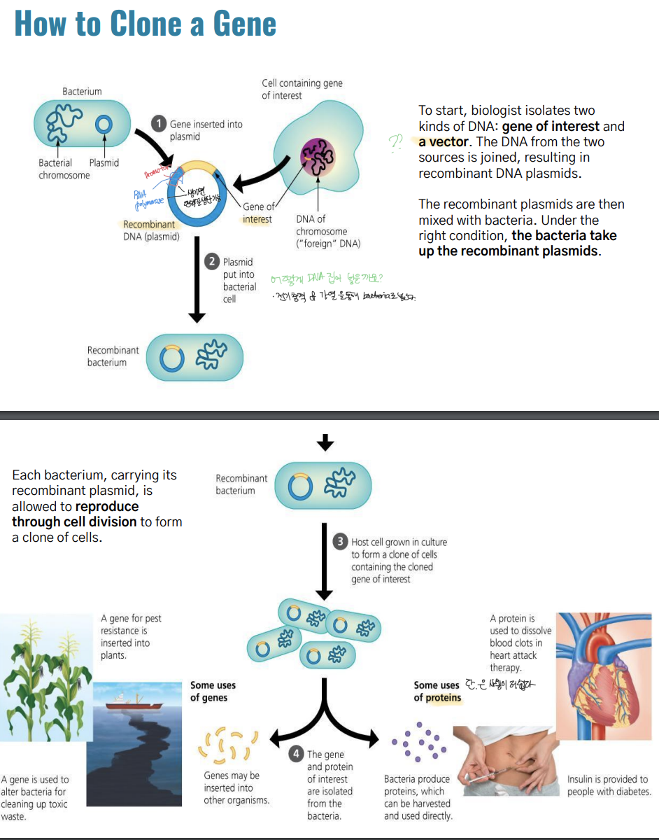 생물학자들은 실험실에서 세균의 플라스미드(plasmids)를 사용하여 유전자를 조작