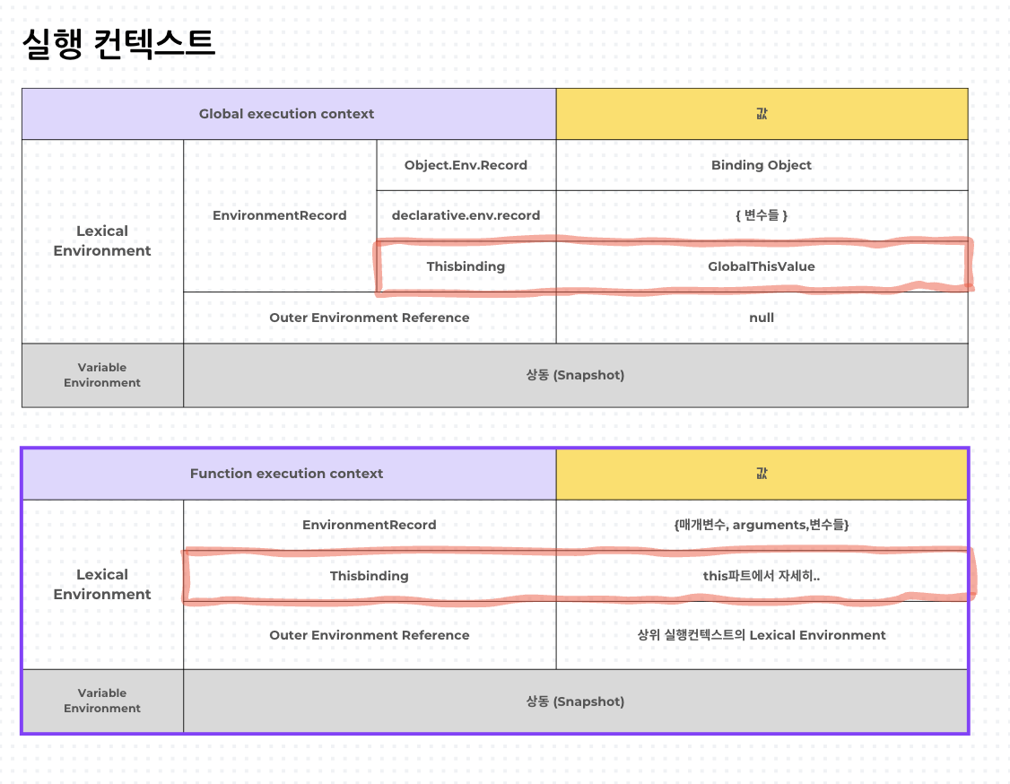 this는 기본적으로 실행 컨텍스트가 생성될 때 함께 결정된다. this는 함수를 호출할 때 결정된다.