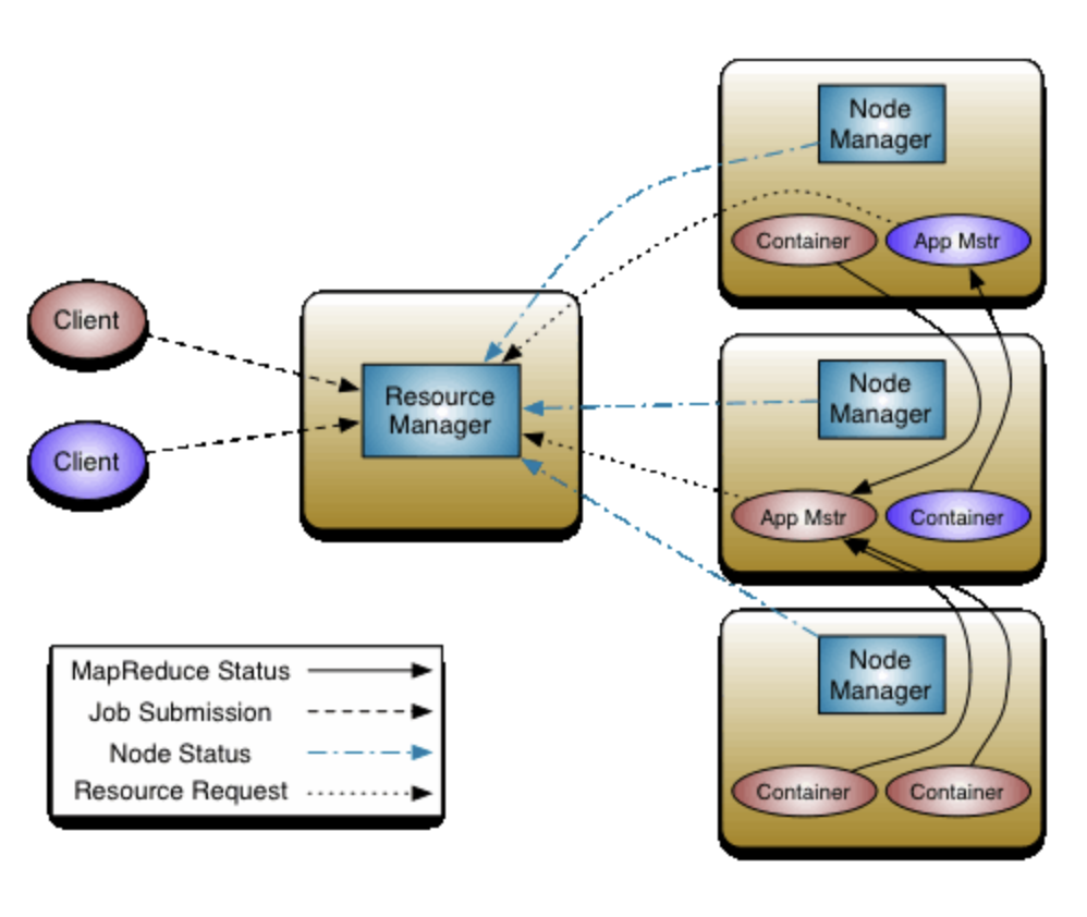 Hadoop에서 자원관리 및 작업 스케줄링에 대한 책임을 YARN에게 넘겨 주어 YARN을 바탕으로 실시간 처리를 위한 Spark, SQL 전용의 Hive, NoSQL 전용의 HBase등 다양한 도구를 사용할 수 있도록 하였다.