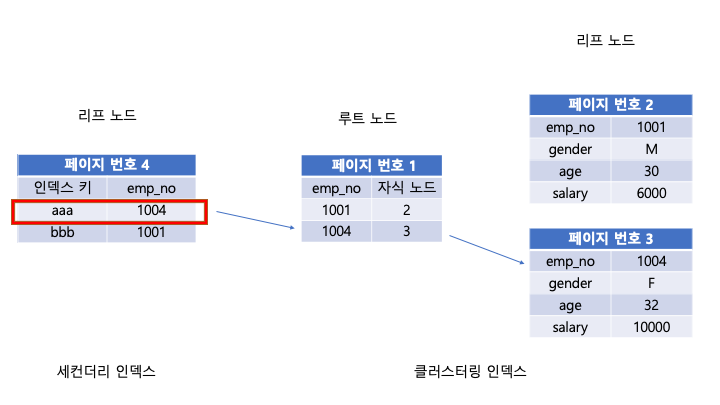 leaf node가 Primary key(클러스터링 인덱스)값을 가지는 경우 이를 세컨더리 인덱스라고 한다.