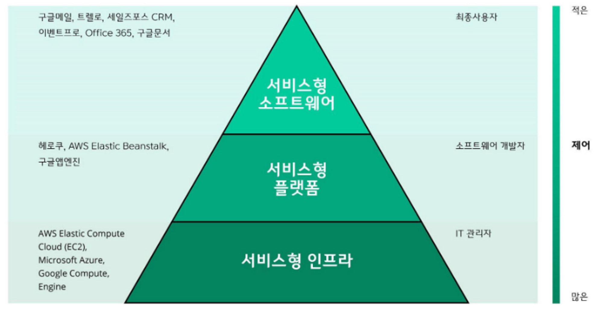 → 서버 구축 비용, 서버 구매 비용등 서비스 관련된 비용을 줄여 준다. 아마존의 AWS, 구글의 GCE등이 있다