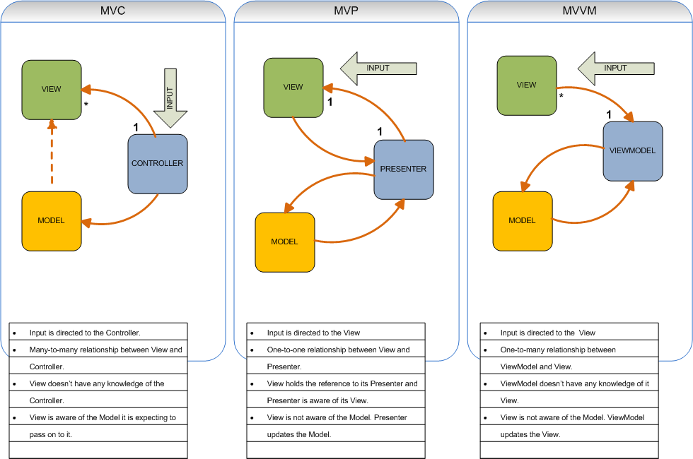 Model - View - View Model로 이루어져 있다.현재 가장 많이 쓰이고 있는 디자인 패턴이다.