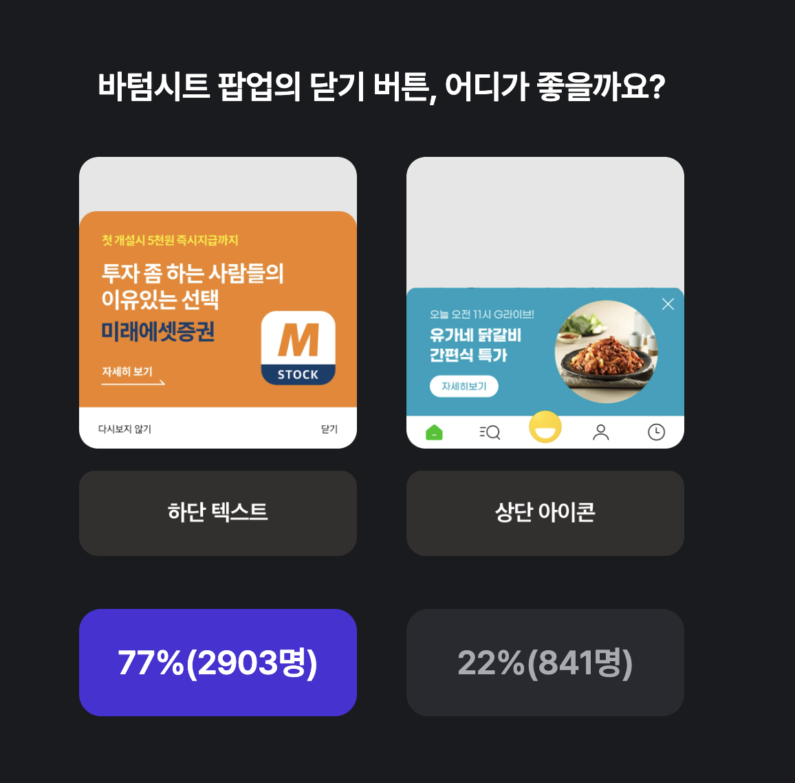 ์ ํ์ง ์ ๊ณต: "๋ค์ ๋ณด์ง ์๊ธฐ"์ "๋ซ๊ธฐ" ๋ ๊ฐ์ง ์ต์ ์ด ์์ด ์ฌ์ฉ์์ ์ ํ๊ถ์ด ๋๋ค.