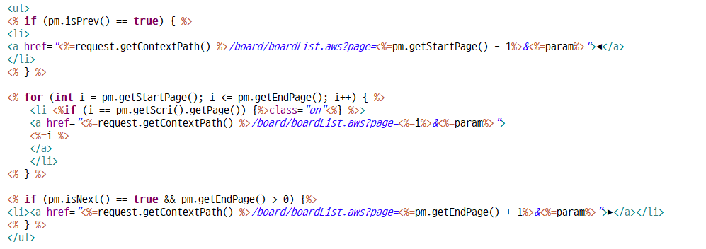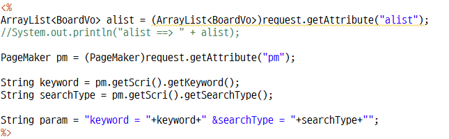 <%%> 부분에 keyword와 searchType을 꺼내서 String param을 만들어주고