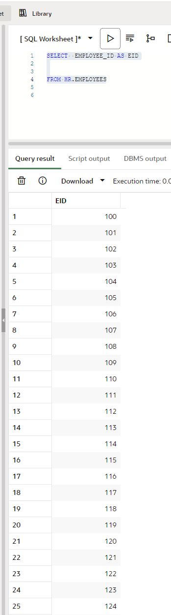 SELECT EMPLOYEE_ID AS EID