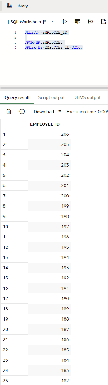 ORDER BY EMPLOYEE_ID DESC;