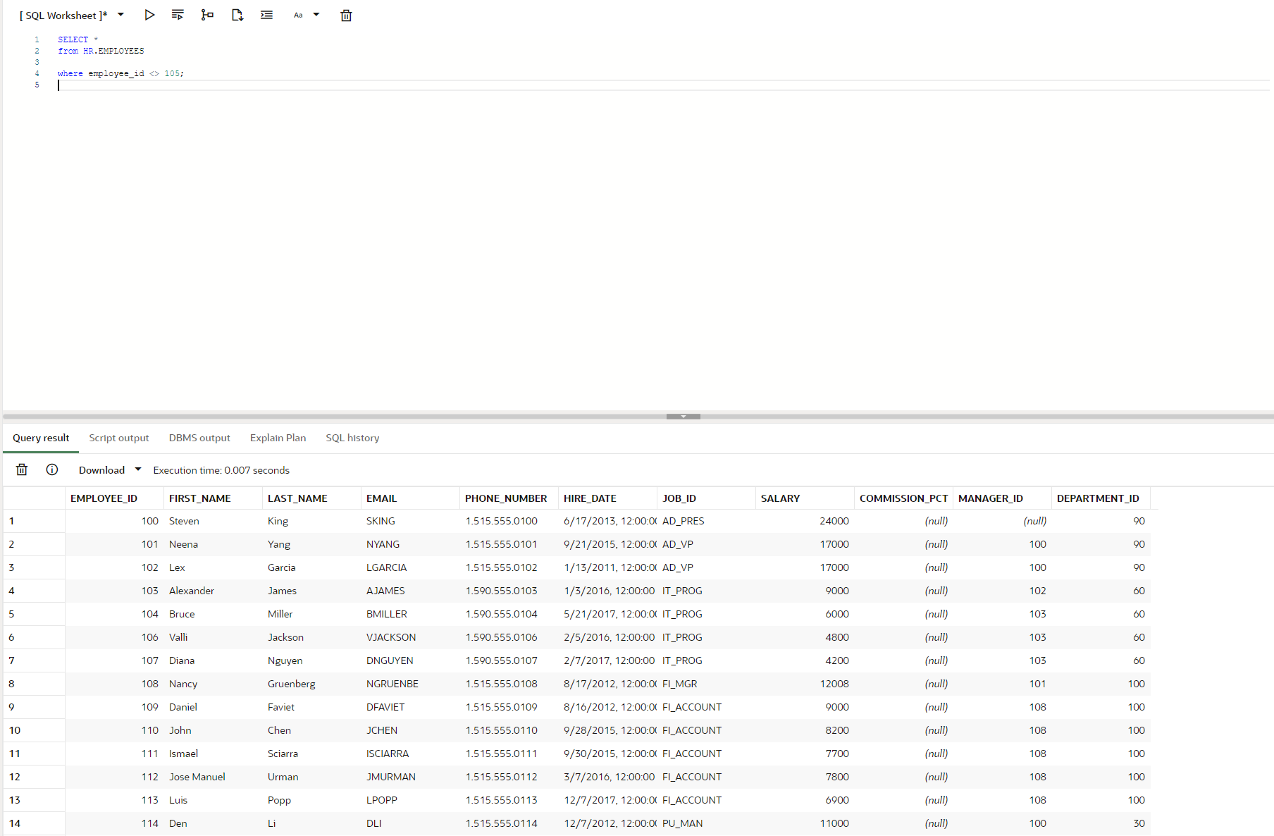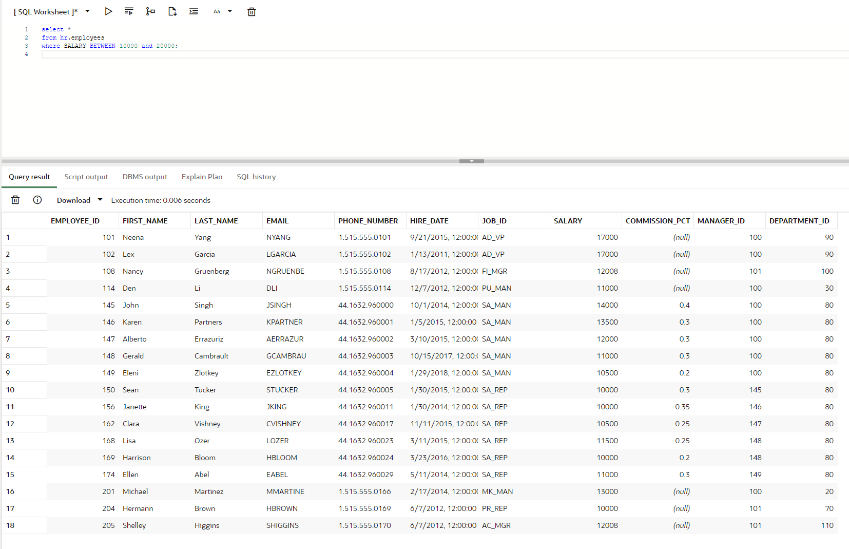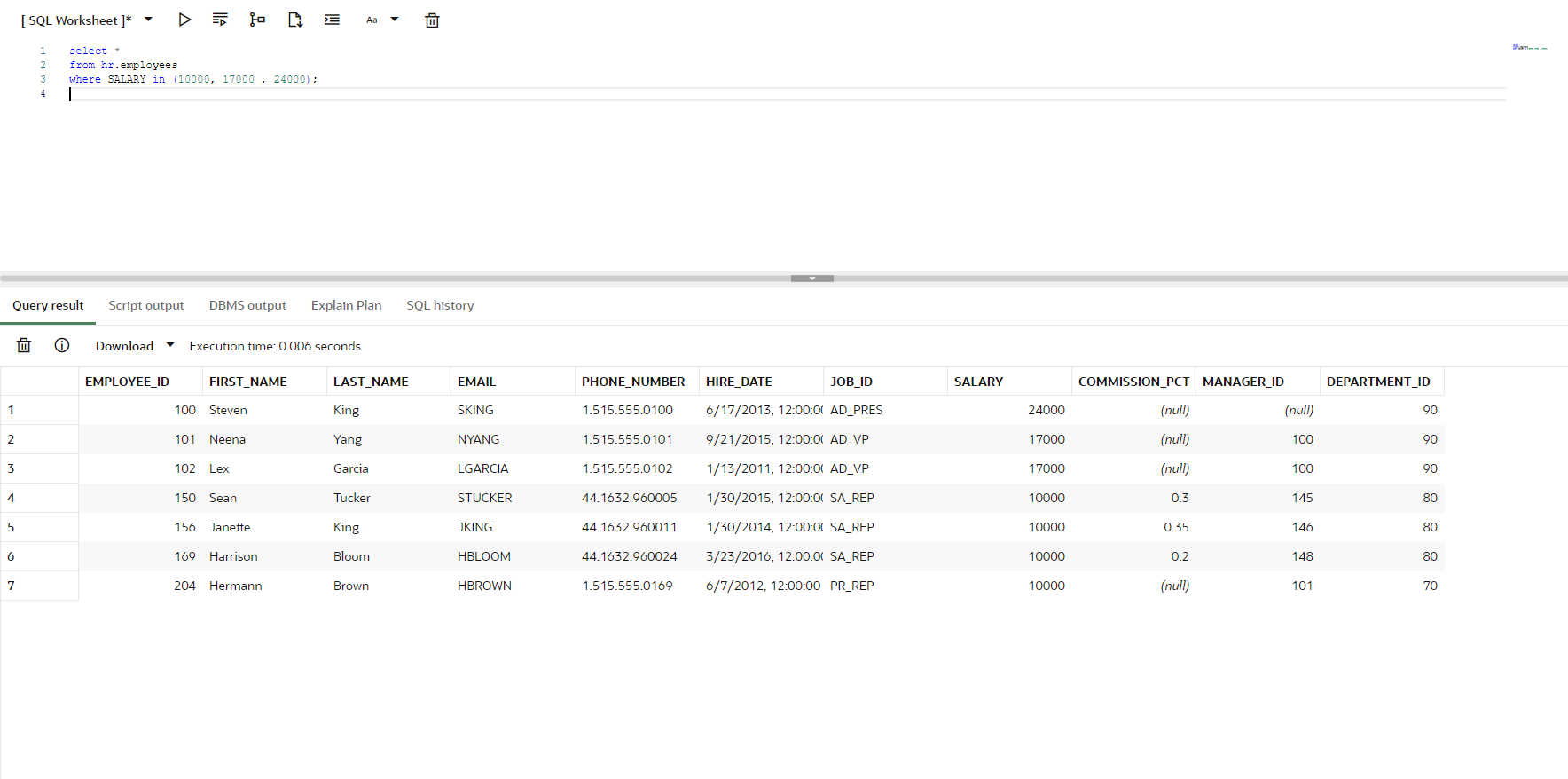 from HR.EMPLOYEES