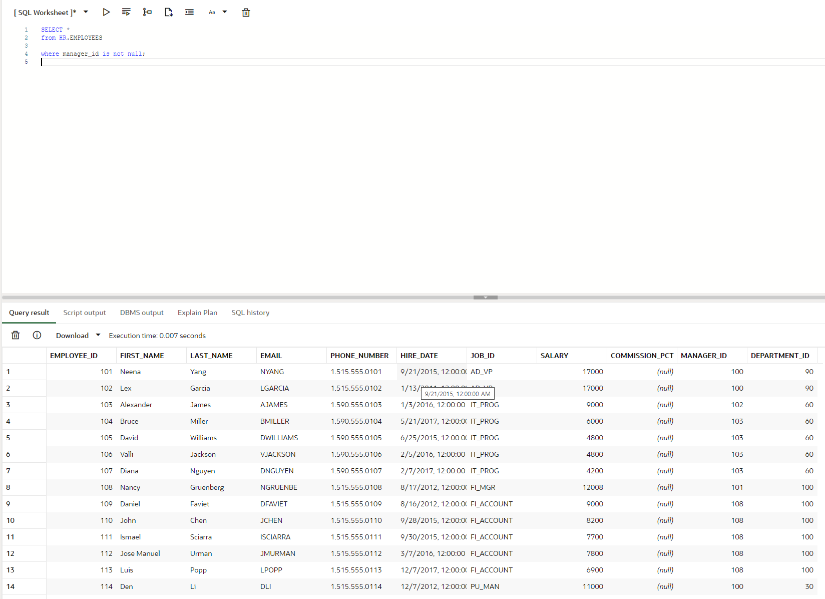 where manager_id is not null; ----null 값이 아닌 경우