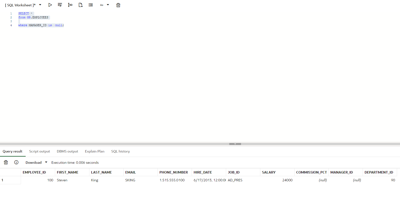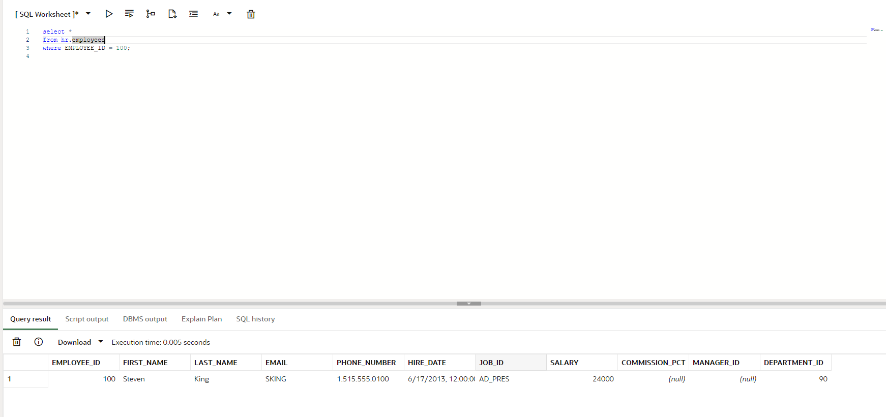 WHERE employee_id = 100;