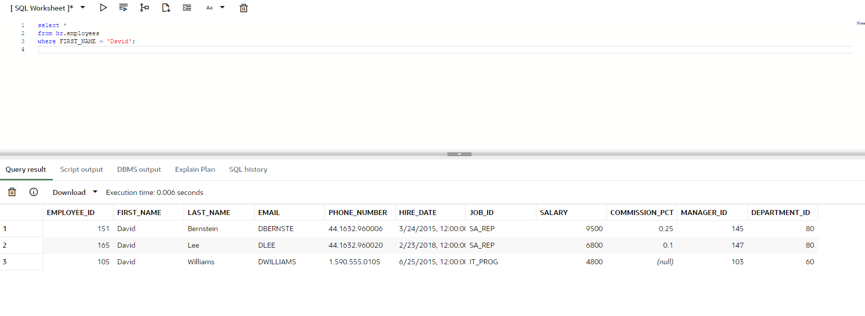 where FIRST_NAME = 'David';