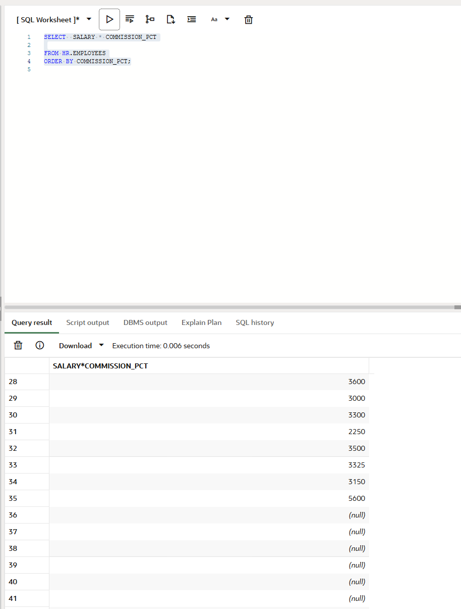 salary * commission_pct는 ‘salary 열과 commission_pct 열을 곱하라’는 의미입니다.
