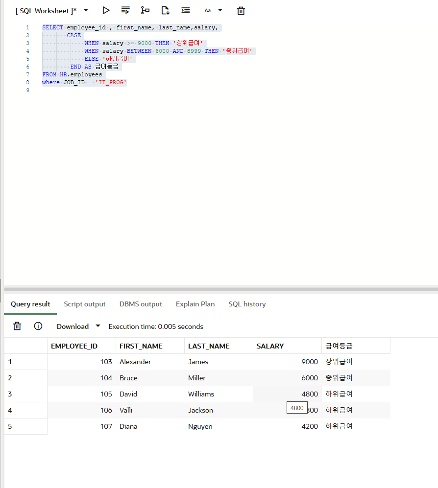 WHEN salary >= 9000 THEN '상위급여'