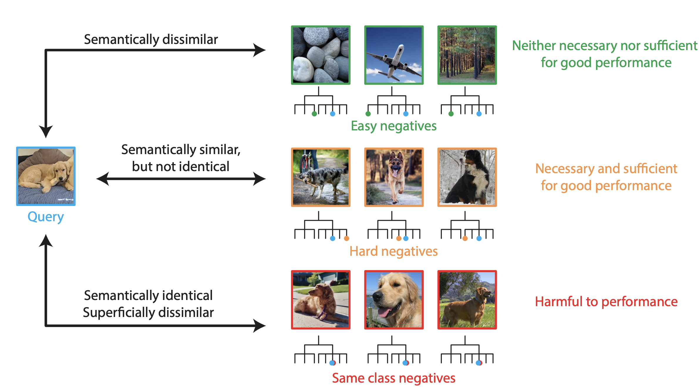 As illustrated in the above metaphor, it is important that hard negatives are selected for training a instance discrimination task to build a model with high performance.