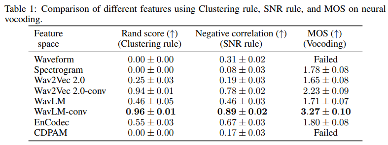 Clustering rule is a metric whether the same sound (same speaker, phoneme, recording environment, ... and more) are clustered together in SSL feature space.