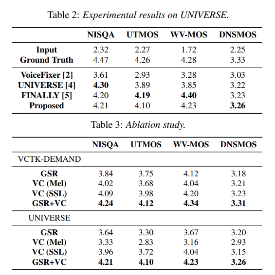 The authors highlight that VC-inspired step helps restore many of the damaged speech components. They don't say that the step actually ensure the style-injection. Then is speaker-agnostic restoration really speaker-agnostic? How can you tell that the tasks are decoupled?