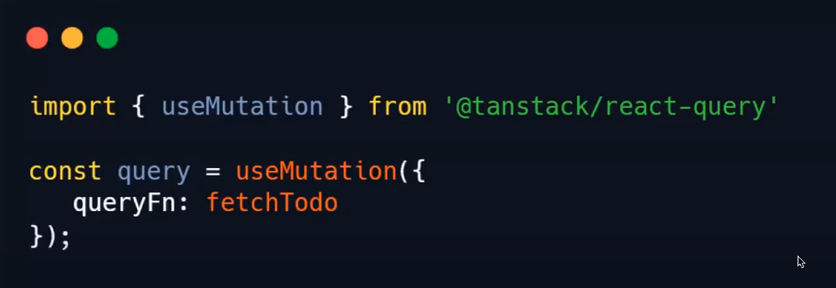 옵션의 필수값에 useQuery와 달리 키 값이 들어가지 않은 모습이다.
