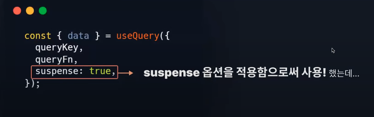 기존에는 useQuery의 suspense 옵션을 true로 설정하여 사용했으나