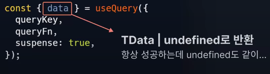 하지만 이제 useSuspenseQuery를 사용함으로써 데이터 타입을 보장할 수 있다.