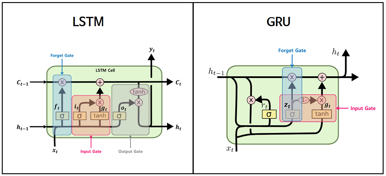 ** 이전에 사용하던 RNN의 구조 (LSTM, GRU) : 이전까지의 결과와 현재 입력을 참고하여 새로운 결과를 생성한다.