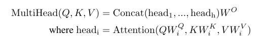 즉, 쿼리, 키, 값을 각각 dk,dk,dv 차원으로 변환하는 linear projection을 h번 수행