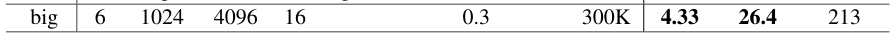 Big Model은 기본적으로 Pdrop=0.1 (이전 모델의 설정은 0.3)