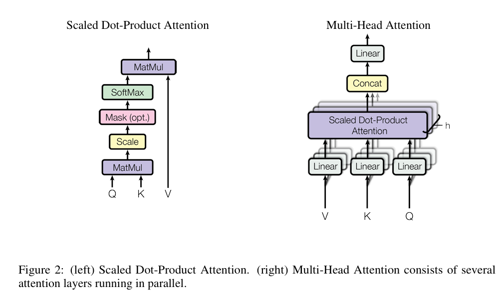Attention Function은 입력 쿼리(Query), 키(Key), 값(Value)을 출력에 매핑하는 것임.
