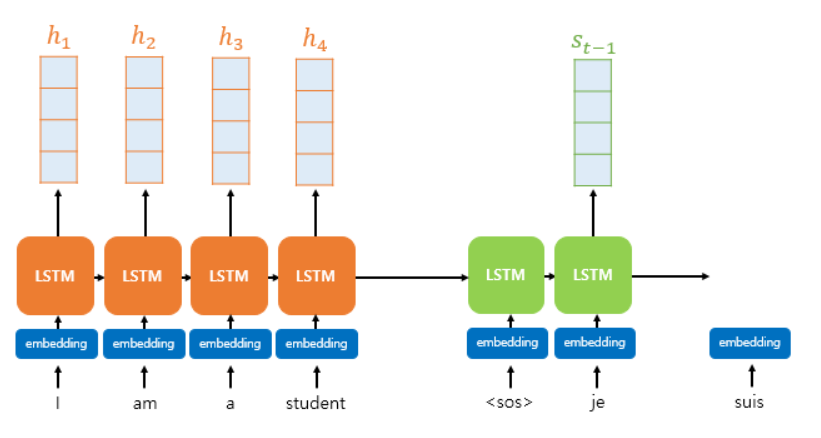 ** RNN 모델 + 어텐션 매커니즘의 대표적인 예시 : 바다나우 어텐션(Bahdanau Attention)